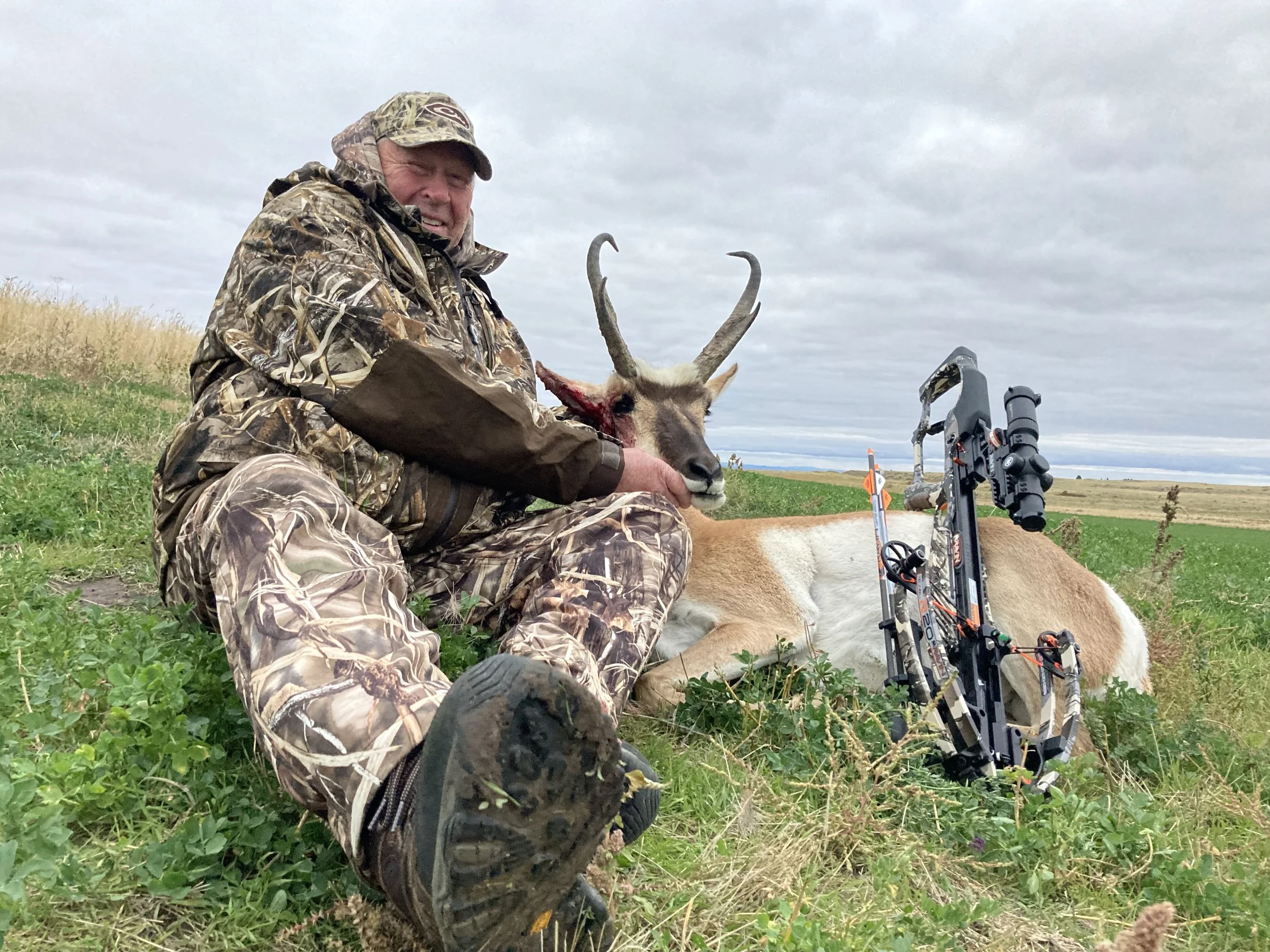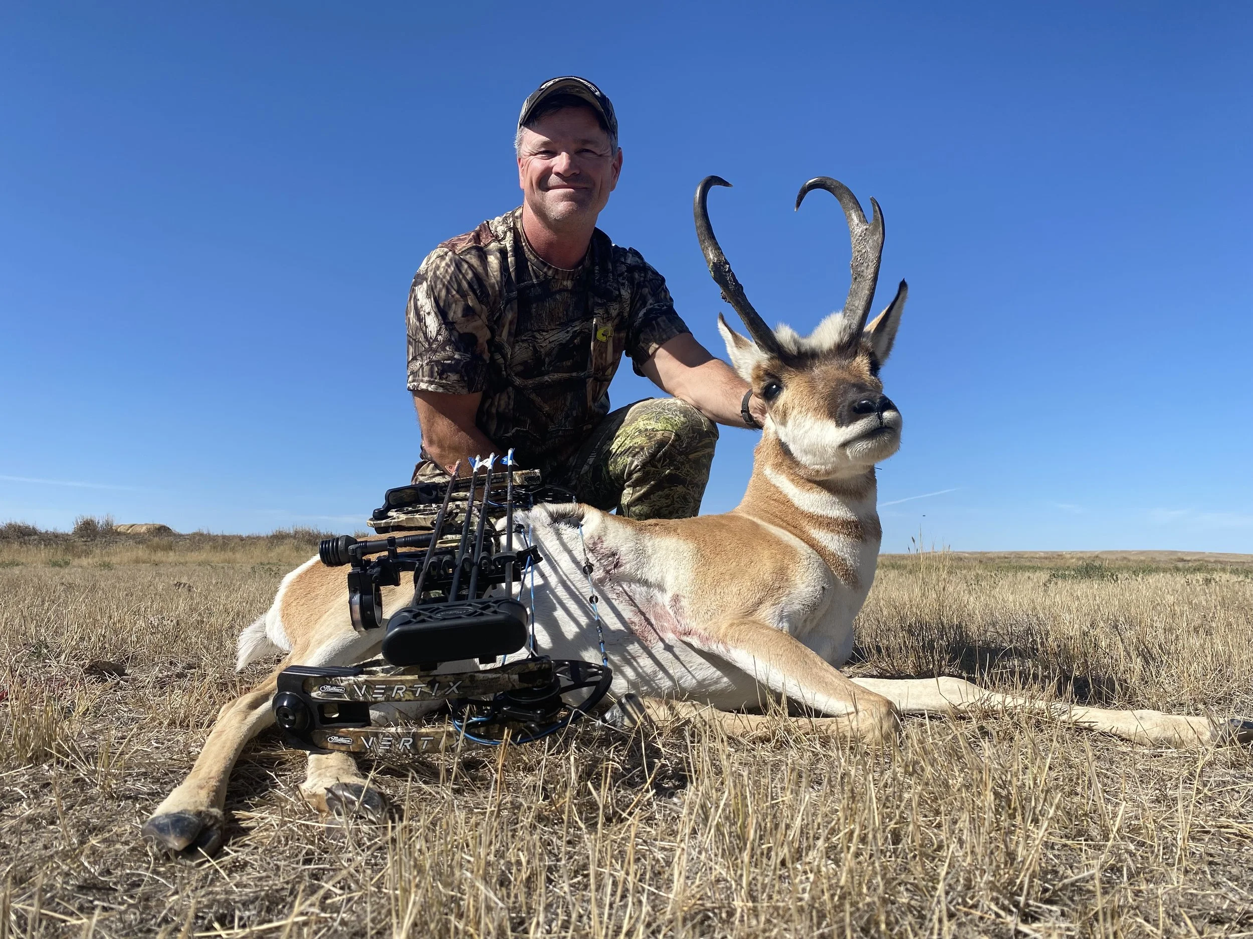 *Most archery shots will be 15-60 plus yards out of tree stands, ground blinds, or spot and stalks. This can be a hard animal to approach, so it isn't uncommon for our clients to be taking 80 yard shots. Just make sure you have plenty of practice under your belt at 60 plus just in case. To up your chances, we recommend a fast shooting bow that you can hold comfortably and release with good accuracy. Cross bows are also legal for anybody to shoot, young need to be 12 years of age or older. We do recommend that clients bring a pop-up blind for changes in antelope movement.